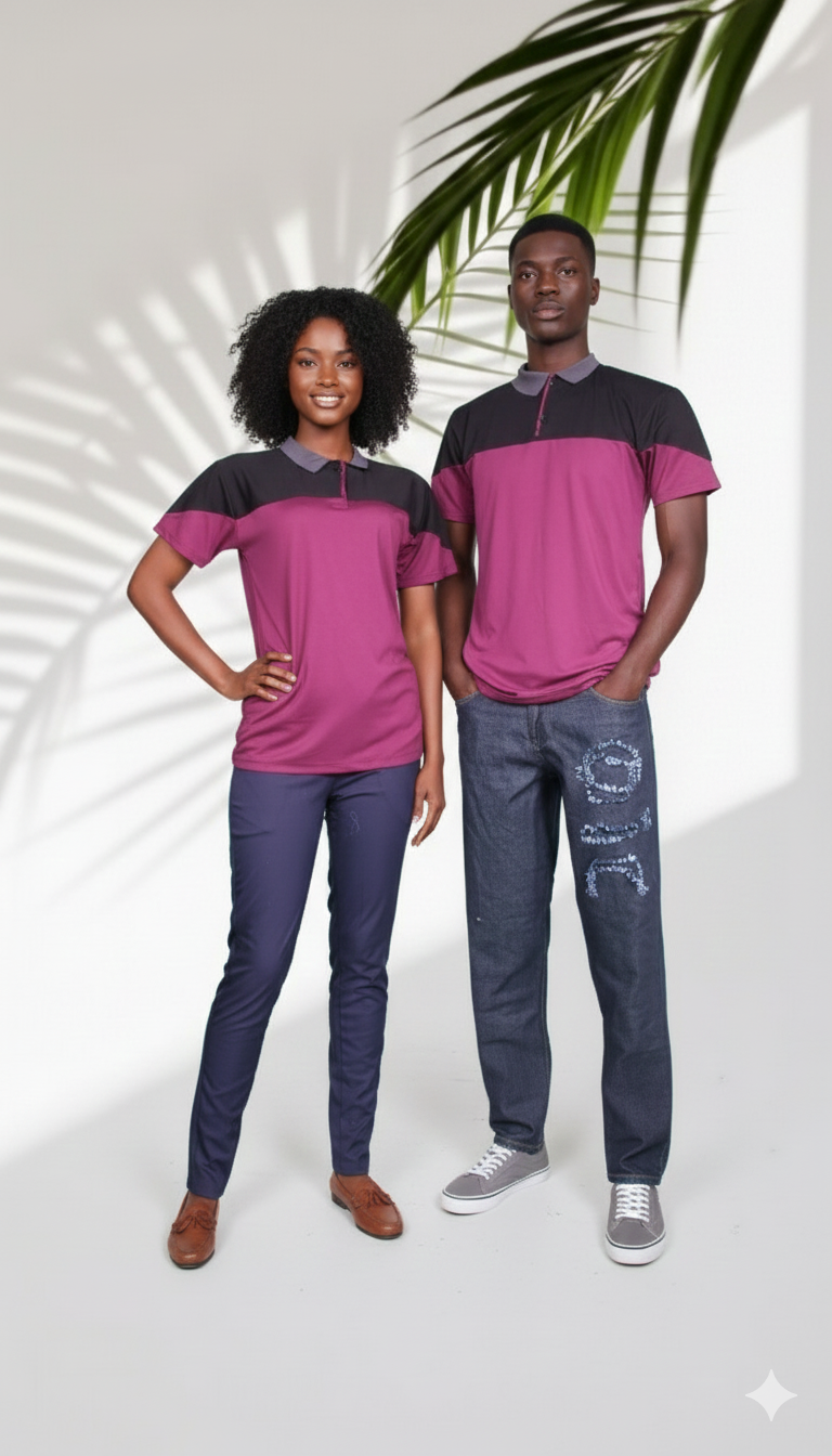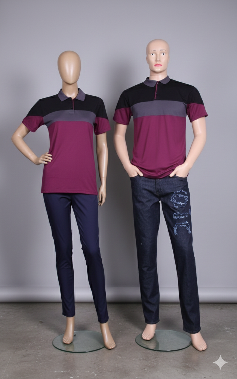 Make a statement with this elegant matching couple polo set, designed for couples who appreciate modern style with a classic touch. Featuring a rich burgundy color combined with sleek color-block detailing and contrasting tones, this set delivers a bold yet refined smart-casual look.