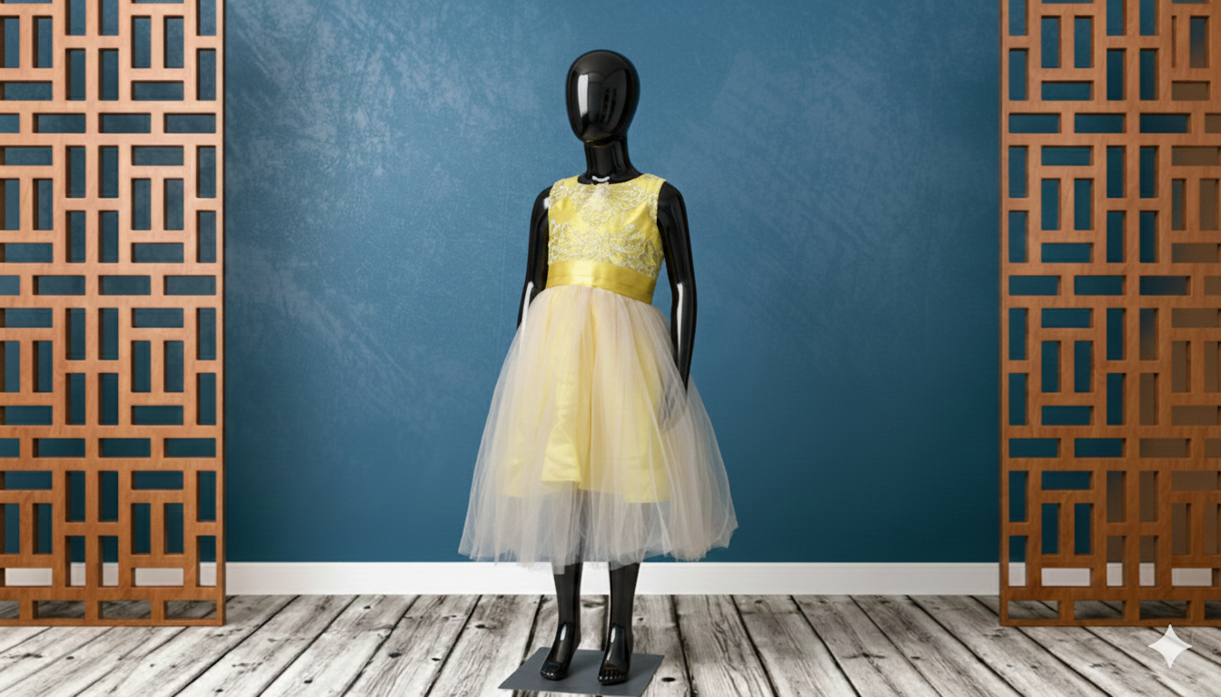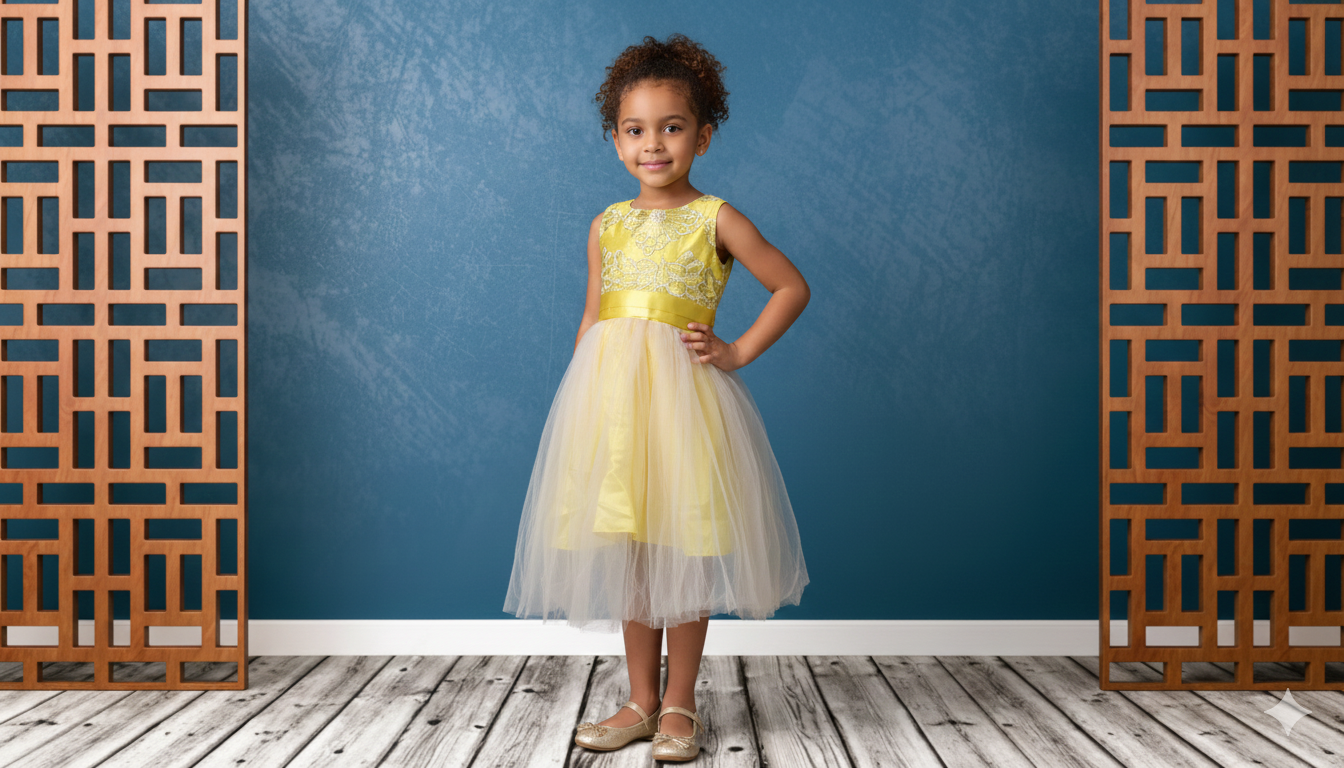 This Golden Blossom Tulle Party Dress is a delightful blend of elegance and youthful charm. Designed in a soft yellow hue, it features a beautifully detailed lace bodice that adds a touch of sophistication. The dress is cinched at the waist with a satin belt, creating a flattering silhouette, while the layered tulle skirt offers a light, airy, and playful finish. Perfect for birthdays, weddings, parties, and special celebrations, this dress ensures a graceful and picture-perfect look for any memorable occasion.